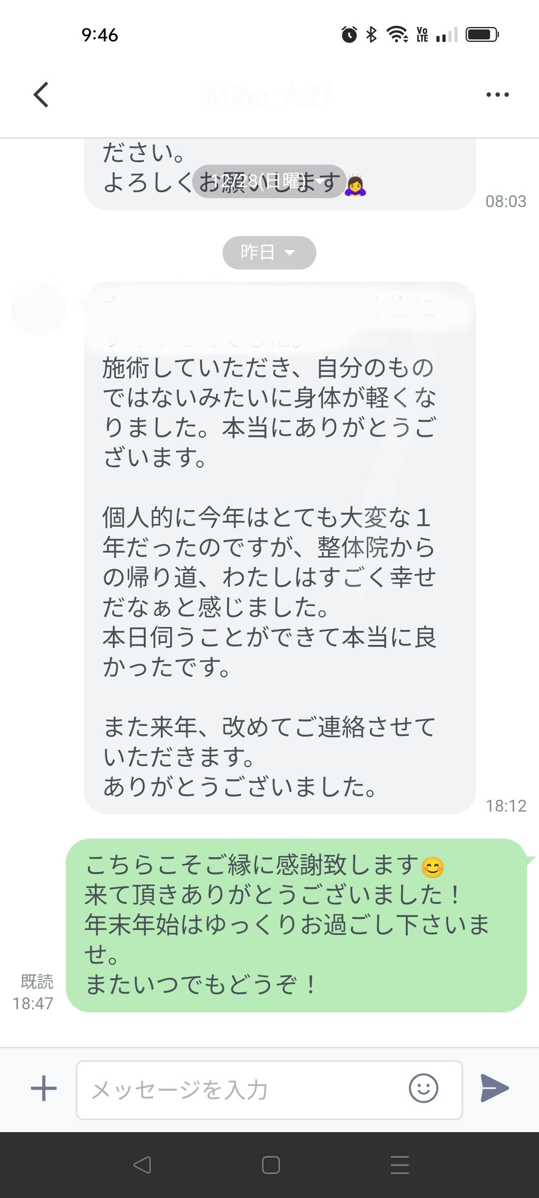 歪みが酷く、軽いギックリ腰状態でしたが喜んでいただけて幸いです(^^)